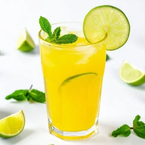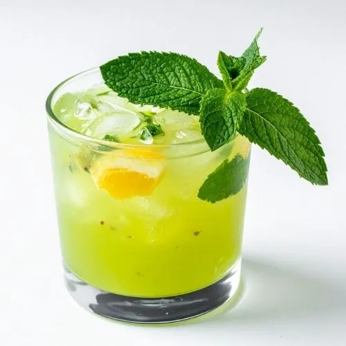 Zesty lemon infused with mint leaves, creating a cooling, tangy drink perfect for refreshment and instant rejuvenation.