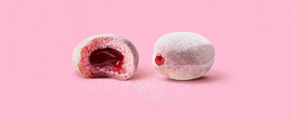 Soft bite-sized donuts bursting with berry flavor, coated in a sweet glaze for a fruity, pop-in-your-mouth treat.