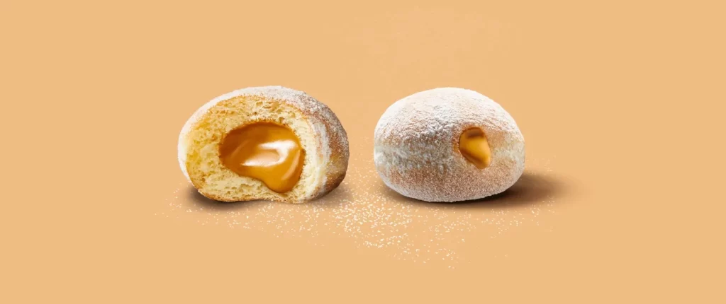 A rich donut filled with creamy hazelnut, topped with a smooth glaze for a decadent, premium treat with bold nutty flavor.